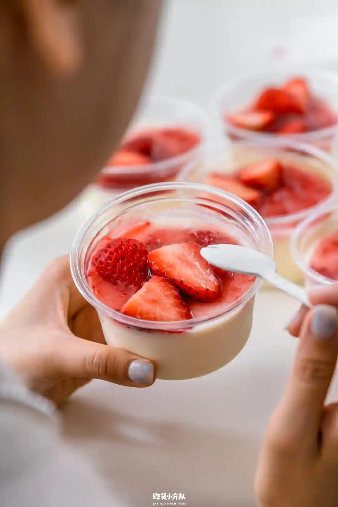 草莓鲜果搭配有点新地雪糕味的草莓酱,吃起来酸酸甜甜。因为是放在冰箱储存的,所以口感比较冰凉。duangduang的质地有些像布丁,清爽丝滑。独立小盒包装,储存方便。ps:不配勺子,要自备!