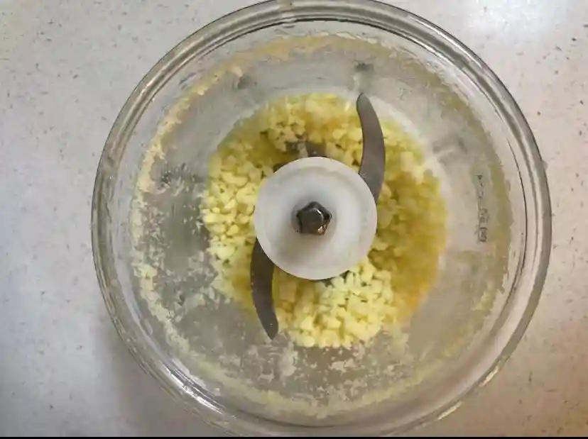1、马苏里拉芝士用料理机打碎备用(也可以用刀切碎)