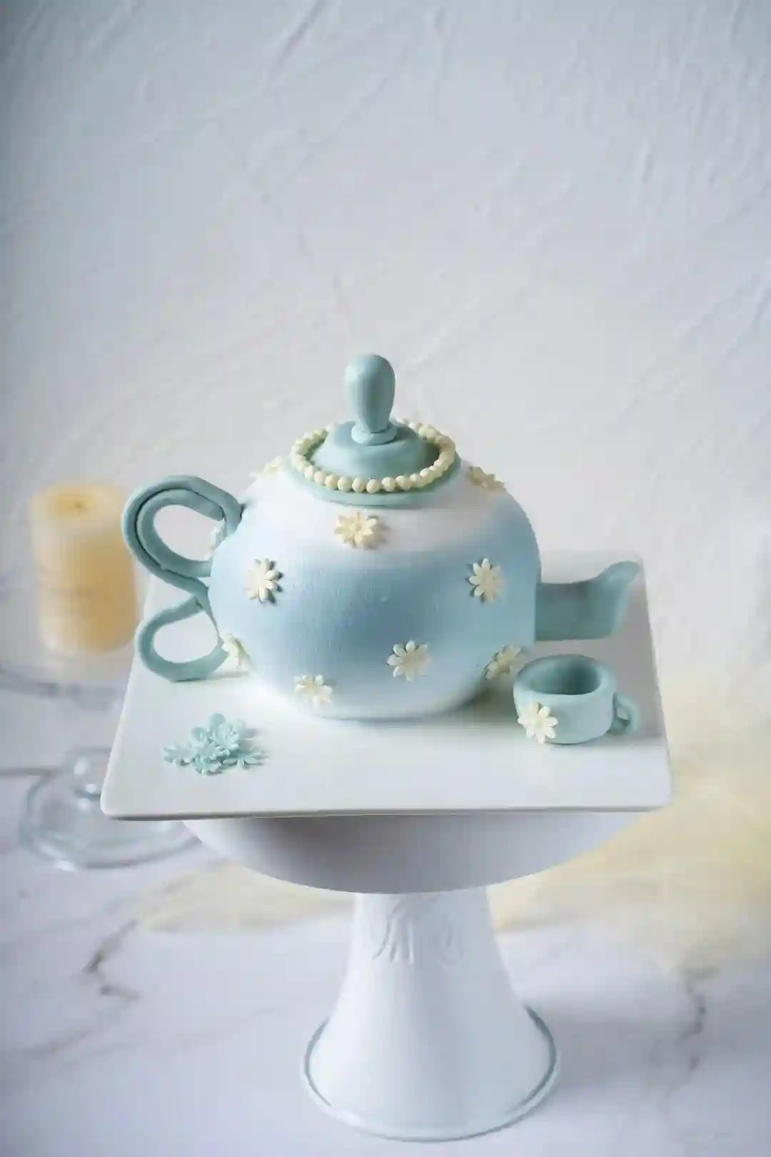 这款茶壶造型的蛋糕真的是将淡雅发挥到极致,“小珍珠”、“小雏菊花”点缀在蛋糕外表,让整个蛋糕看起来还具有了一股小香风的韵味。