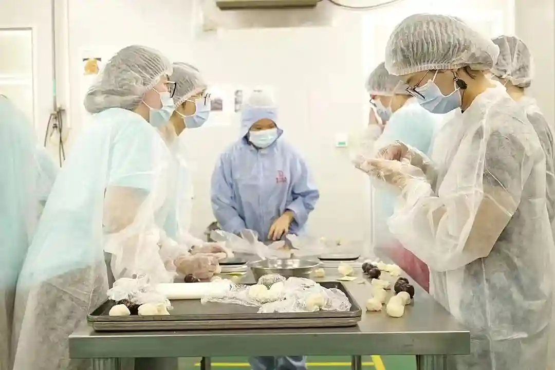 活动期间,青少年严格遵循食品生产安全要求,按照生产车间标准穿戴和消毒,并开始DIY制作广式糕饼。在专业人员指导下,他们经过选材、配料等步骤,在认识原材料和选取合适成分的基础上,成功制作出精美糕点。