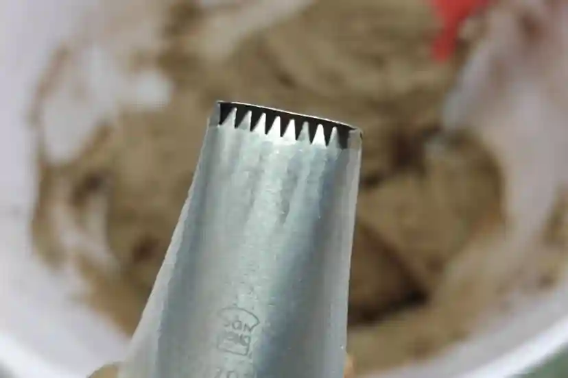 11、裱花袋剪小口,装入扁嘴花嘴。