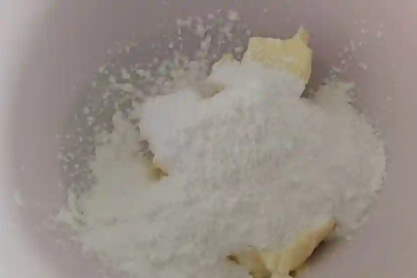 4、黄油提前软化到用手能够轻松戳洞,用打蛋器低速把黄油打几秒,加入盐和糖粉,用刮刀压拌均匀(预防打蛋器打的时候糖粉飞溅出来)