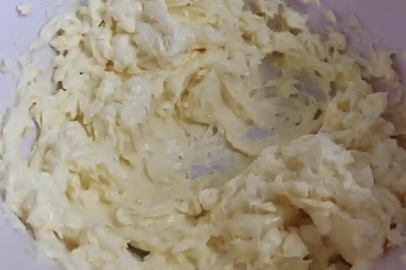 5、再用打蛋器低速把黄油打到颜色发白体积蓬松。