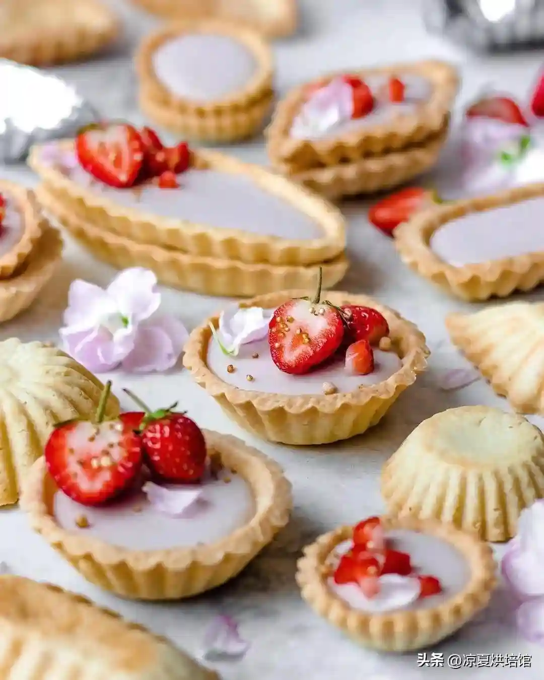 塔派在甜点中属于甜酥糕点类,是以黄油、面粉、糖粉为主要原料,巧克力、抹茶粉、可可粉、杏仁粉为口味辅料制成不同风味的塔壳,在塔壳内填充各种馅料,用水果、巧克力插件、鲜花装饰的一种甜点。