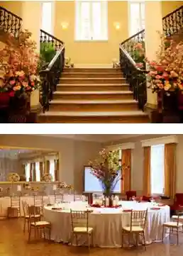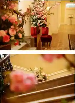 沿着位于主楼中心、花朵簇拥的双向楼梯拾级而上,即到达二楼主宴会厅。由“THEWEDDINGCO.”布置的模拟婚宴现场,融合中西两种风格,为您呈现外滩源壹号精致婚宴的无限可能。