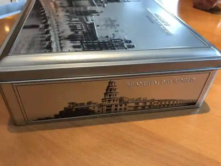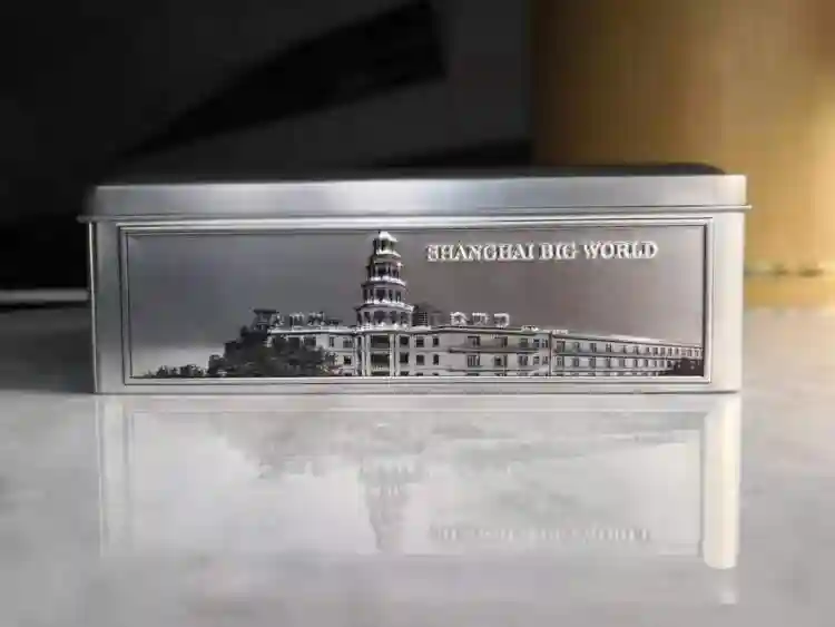 细细看这一款灰色铁皮盒包装的月饼,正面和四个侧面分别刻制了外滩万国建筑博览群、外白渡桥、四川北路邮政大楼和大世界等上海地标建筑。用手一摸,这些建筑并不是平面的,而是凹凸的,“我们想做得更真实,更有立体感和历史感,而包装颜色选择灰色是想更庄重典雅。”设计人员介绍,因为觉得中秋吃月饼是很能代表中国传统文化的一件事,所以在包装设计方面也想体现这种历史文化的积淀。