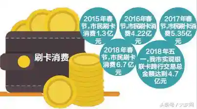 仅以银联卡刷卡数据来看,2015年春节7天假期,市民持卡消费1.3亿。2016年,这个数据为4.22亿元,2017年为5.35亿元。到了2018年,我市实现银联卡跨行交易总金额达到6.7亿元,较2017年同期增长24.8%,再创新高。而2018年五一假日期间,我市实现银联卡跨行交易总金额达4.7亿元,较2017年同期增长11.4%。