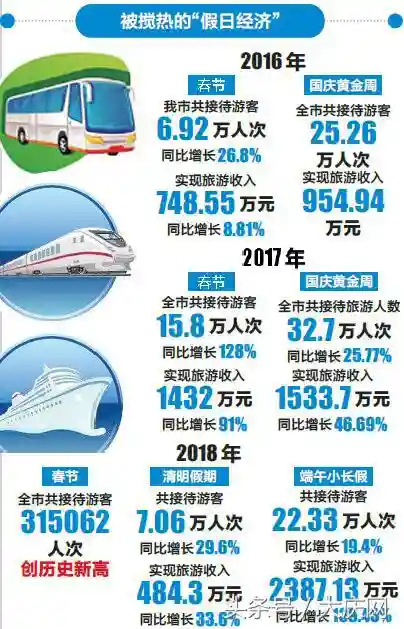 根据数据我们可以看出,假日期间,旅游出行的人数、消费总量都在增加。“假日经济”在促进我市经济增长中,发挥着越来越重要的作用。