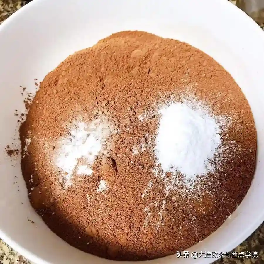 5、低粉加可可粉加泡打粉和小苏打拌匀备用。