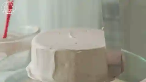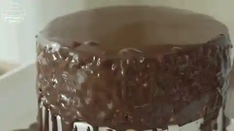 16/取出蛋糕,将甘纳许淋在蛋糕上,转动蛋糕涂抹均匀。