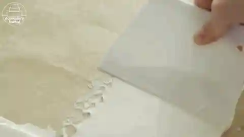 4/烤盘垫油纸,将面糊倒入并用刮板刮平。