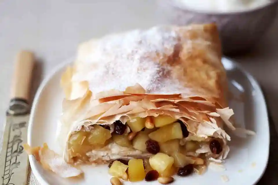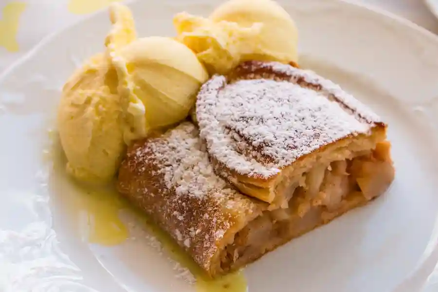 在奥地利人心里,苹果卷是他们的国家甜点。苹果卷是一种酥脆的糕点,里面是苹果馅,还加入了肉桂、糖和葡萄干。