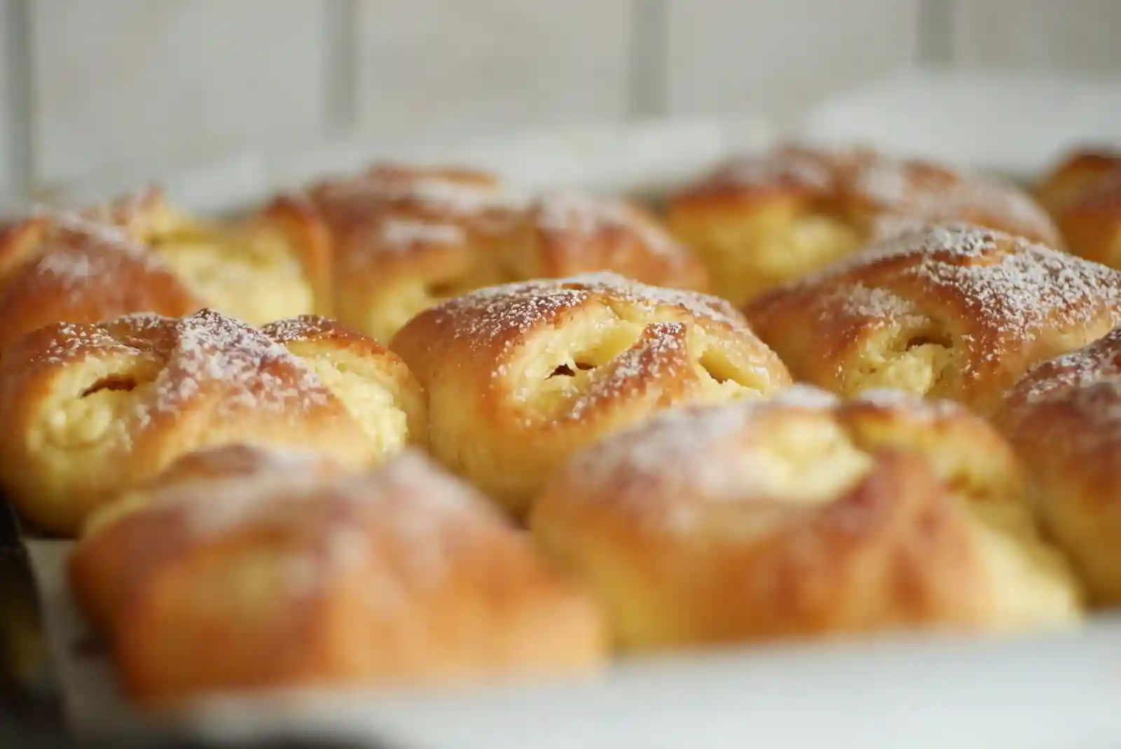 馒头呈褐色,表皮酥脆,内部却如海绵一样松软。它们通常作为甜点,上面会放香草酱或直接加糖。