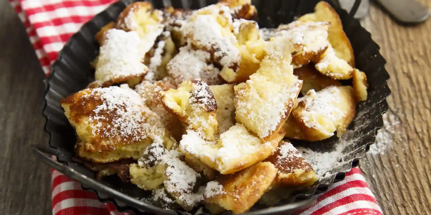 国王松饼的奥地利语是Kaiserschmarrn,“kaiser”意思是国王,“schmarrn”的意思是细条或碎片。这种松饼很蓬松,可以单独作为甜点或餐点。
