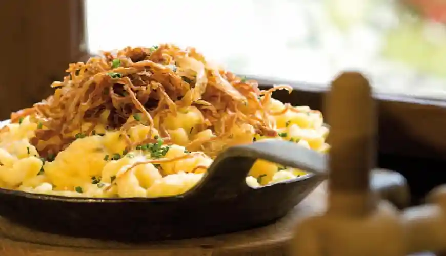 在奥地利山区,芝士面疙瘩是常见的美食。面疙瘩是一种柔软的鸡蛋面,形状和品种都有所不同。