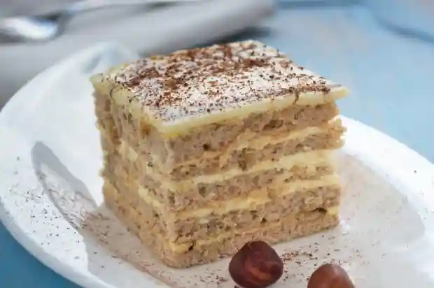 切片蛋糕是一种基于蛋白酥皮的分层甜点,在维也纳很常见。这款甜点的颜色为白色和金色,是天主教堂的颜色,而切片蛋糕的奥地利语“Kardinalschnitte”字面意义就是红衣主教的切片。