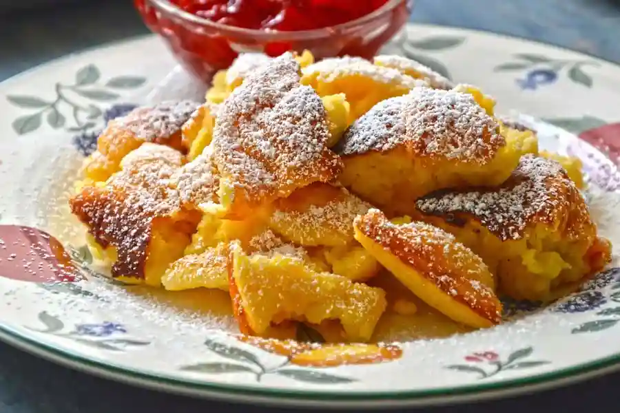吃的时候可以把松饼切成小块,然后撒上果酱、甜酱、水果蜜饯和焦糖干果等。这道甜点自19世纪开始流行,现已经成为奥地利传统美食的一部分。