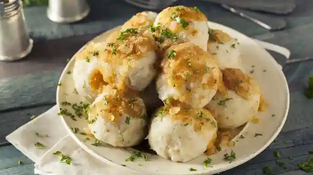 果酱饺是用特殊的土豆面粉做成的,然后把李子酱、朗姆酒(或李子酒)作为馅料塞进去。最后,上面会放面包屑、肉桂、香草、坚果(如核桃)和黄油等。