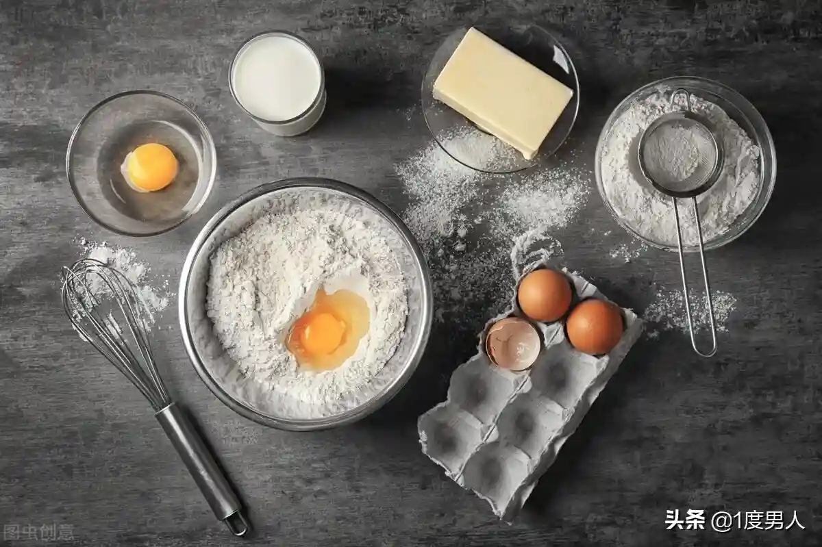 搅拌、调制、烘烤后,制成海绵状零食。