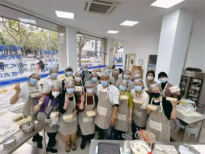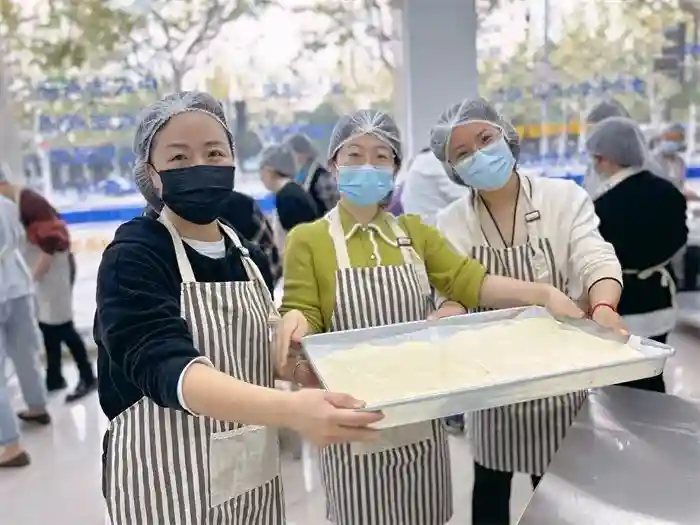 除了品牌蛋糕,徐玉良还向大家传授了“希梵尼蛋糕”的制作方法。学员们认真按照步骤,从准备食材到打蛋液、搅拌食材、烤箱摆盘、烘焙烤制等,每一个细节都互相协作,尽情享受手工西点和美食文化的魅力,共度美好“食”光。