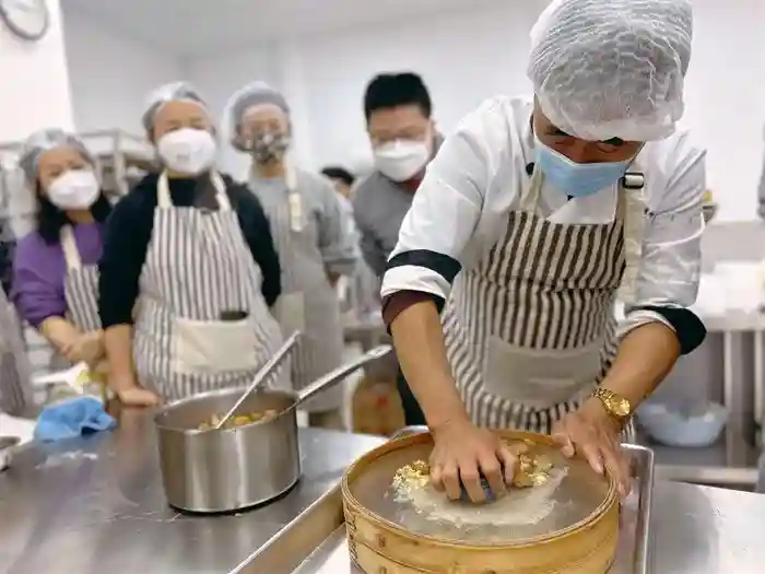 11月19日,徐汇区各中小学幼儿园的40余名教职工,现场接受了点心大师的“手把手”教学。