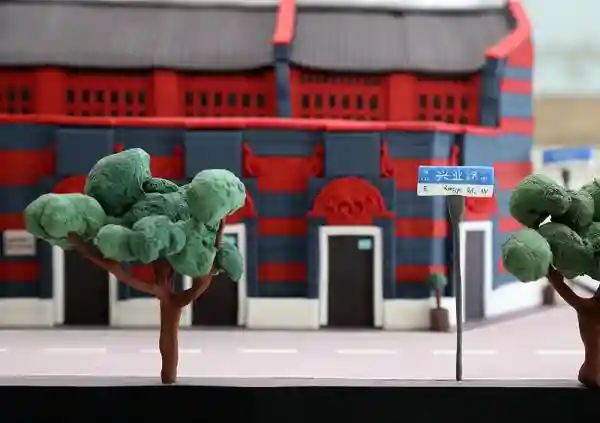 作品《一大会址》从路牌、门牌号到窗户、墙砖都清晰可见,俨然一个建筑模型,实则是一块由翻糖制作而出的蛋糕模型。