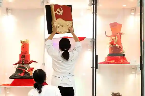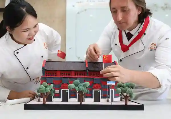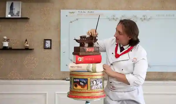 日前,上海市奉贤区南桥镇一家西点培训学校,一位来自俄罗斯的能工巧匠带领学员耗时近两个月,以翻糖和巧克力为主材,做出《峥嵘岁月》、《光耀中华》、《百年党史》、《东方明珠》等五组红色主题作品。