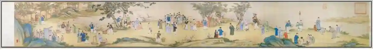 《太平春市图》绢本设色,纵30.3cm,横233.5cm.台北故宫的宝藏。