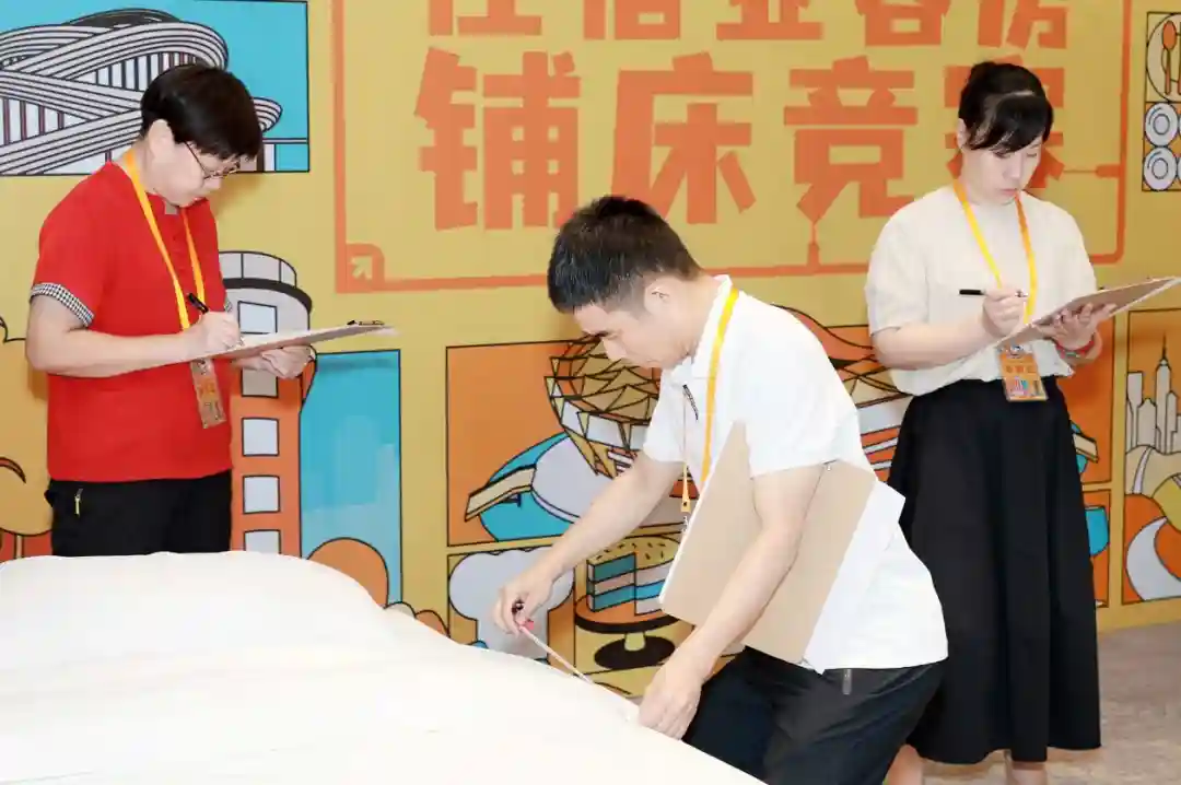 区人大常委会副主任、区总工会主席朱伟红,区文化和旅游局党组书记、局长伍彦心,区人力资源和社会保障局党组书记、局长彭燕出席开幕式,区文旅局,总工会、应急局、市场监管局、体育局、市旅游行业协会、区旅游促进会等相关负责人一同见证大赛开幕,观摩酒店客房铺床展示、中西式创意摆台展示、中西式点心·烘焙展示。