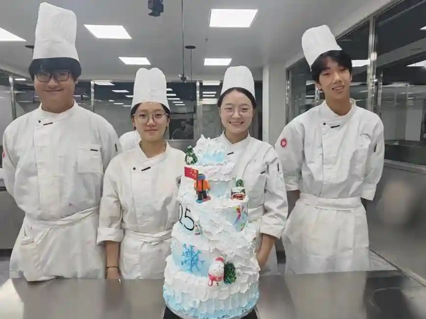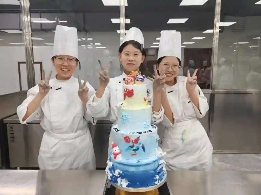 经过紧张而充实的制作过程,一个个独具特色的亚冬会主题多层蛋糕呈现在大家面前。这些蛋糕不仅展现了学生们精湛的裱花技艺,更凝聚了他们的团队智慧和对亚冬会的热情。同学们深刻体会到了裱花这门技艺的魅力和价值,他们纷纷表示,这次难得的活动让他们受益匪浅。
