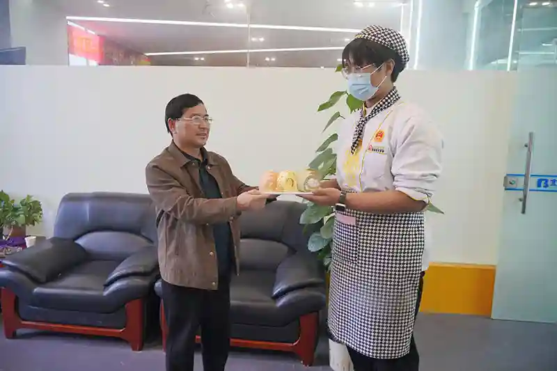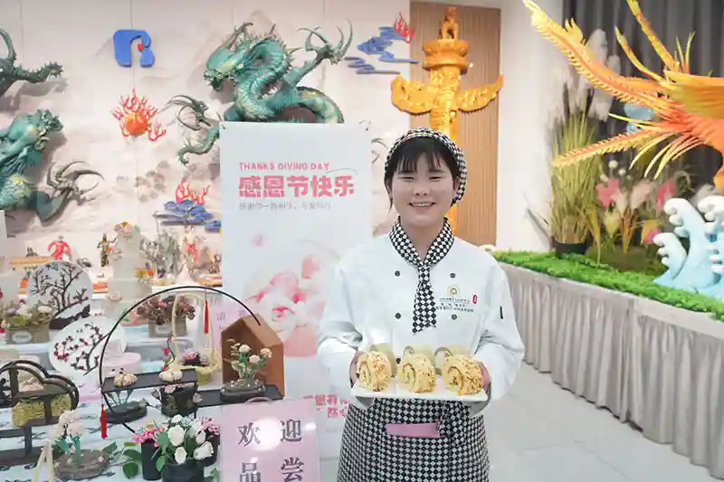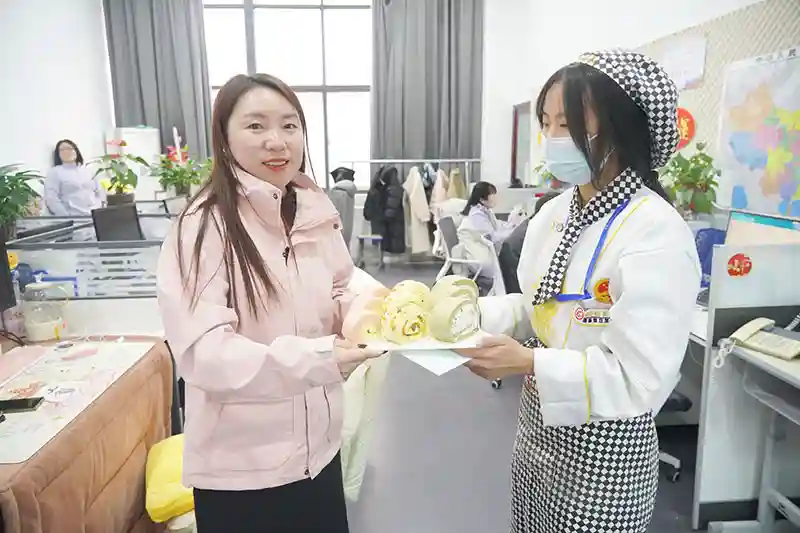 当学生们手捧着这些美味的蛋糕卷和自制感恩贺卡送到老师们手中时,老师们的脸上洋溢着感动与欣慰。这份特殊的礼物不仅仅是一份美食,更是学生们对老师谆谆教导的感恩与回报。在郑州北方学校,老师们始终以敬业的精神和无私的奉献,为学生们传授知识和技能,引领他们在西点专业的道路上不断前行。