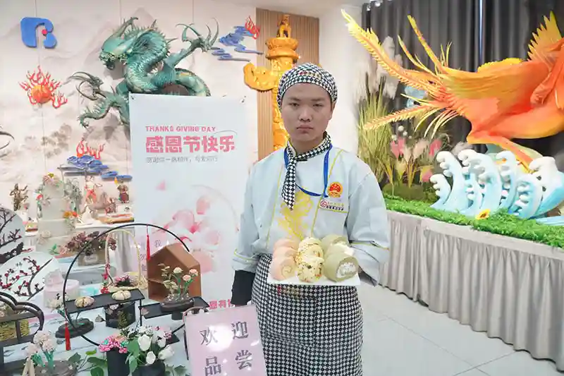 在这个充满温情的感恩节,郑州北方学校西点专业的学生们用自己的实际行动表达了对老师们的深深感恩之情。他们亲手制作了美味的大理石蛋糕卷、抹茶蜜豆蛋糕卷、香葱肉松卷,并将这些精心制作的蛋糕卷和亲笔写下的感恩节祝福送给了学校的老师们。