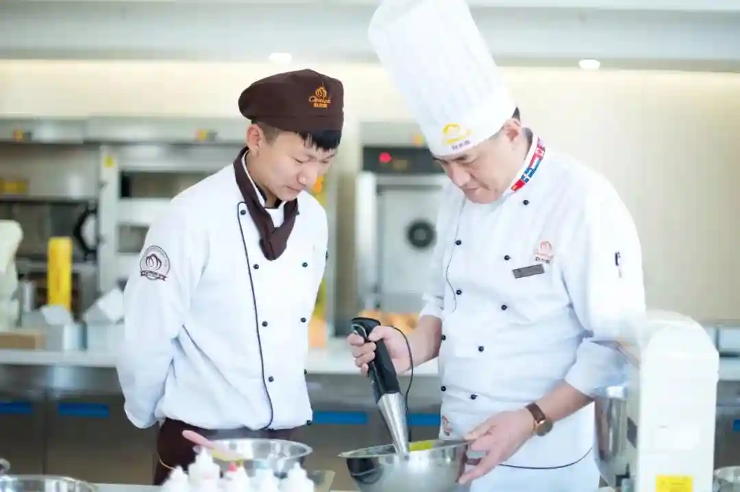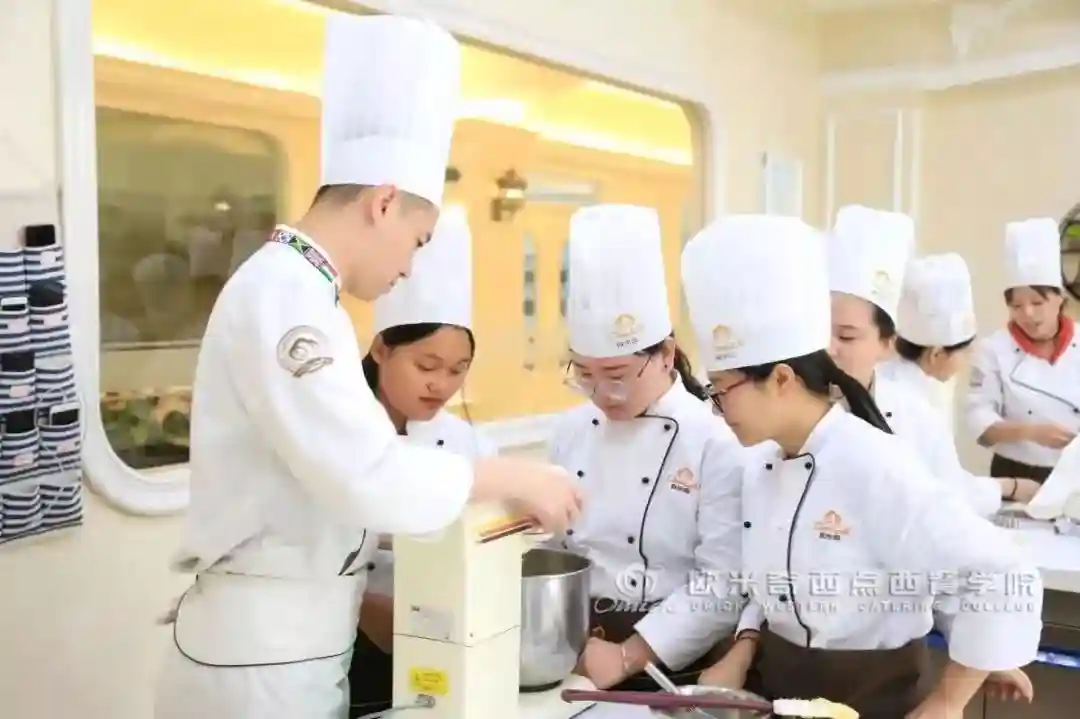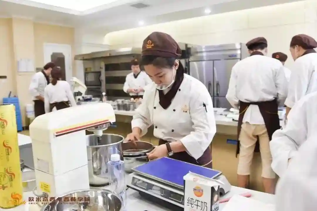 在山东欧米奇的课堂,从仪表装容到桌面卫生都严格把控。创新情景教学模式,放弃传统课桌、书本、考试卷。老师演示,学生实际上手操作,更易牢靠掌握烘焙技能。