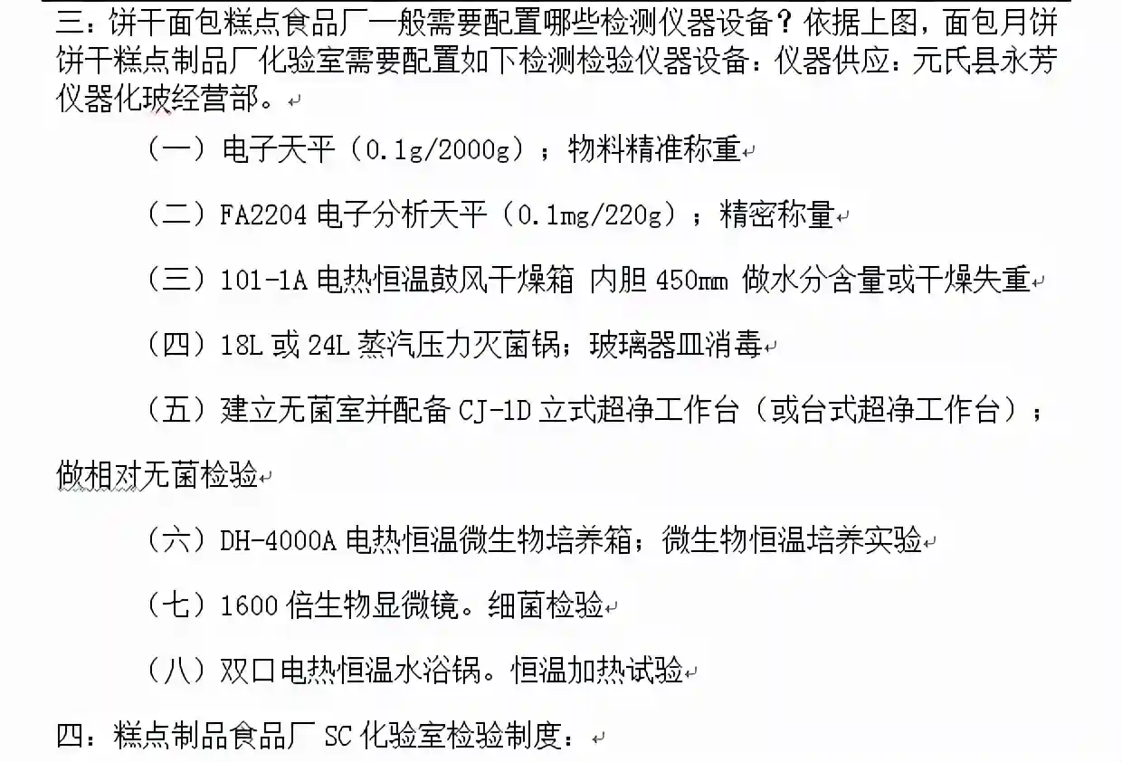 小型糕点食品厂检测化验室一般配置都有哪些仪器设备?月饼饼干面包蛋糕糕点食品厂一般需要配置哪些检测仪器设备?糕点制品食品厂SC化验室检验仪器设备配置方案清单大全。新建糕点食品厂化验室建设及检验仪器设备配置清单方案。我们说到糕点食品,首先要了解一下糕点食品概念、所用原料组成、制作方法,然后我们再讲一下糕点制品有哪些检验项目及糕点化验室仪器设备的购买配置方案清单。
