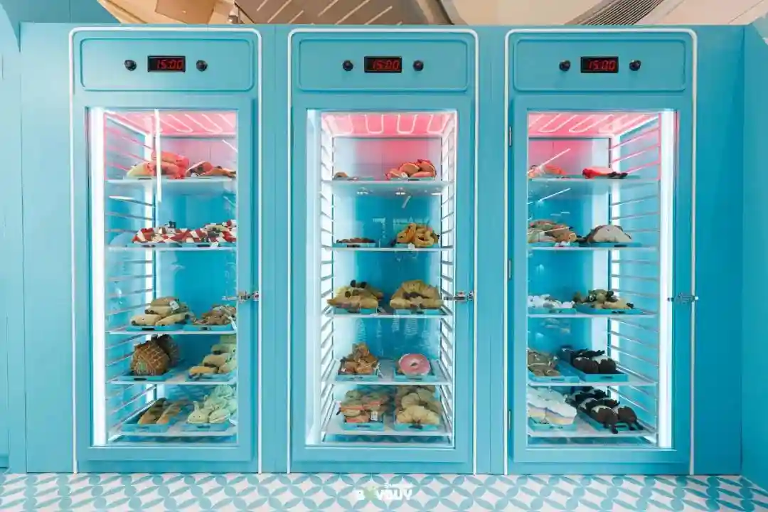 面包房还有一面墙安置了3个立柜“大烤箱”,红红的灯光表示超多可爱库存小面包正在制作中。也可以打开烤箱挑选哦~