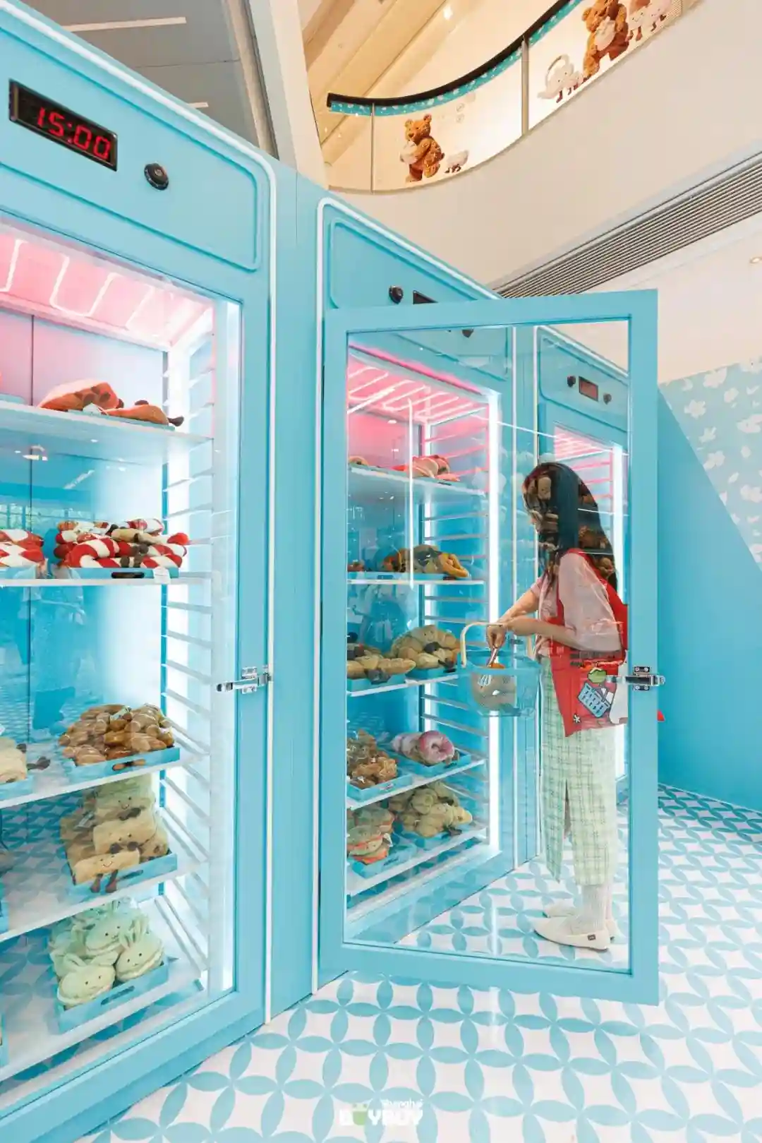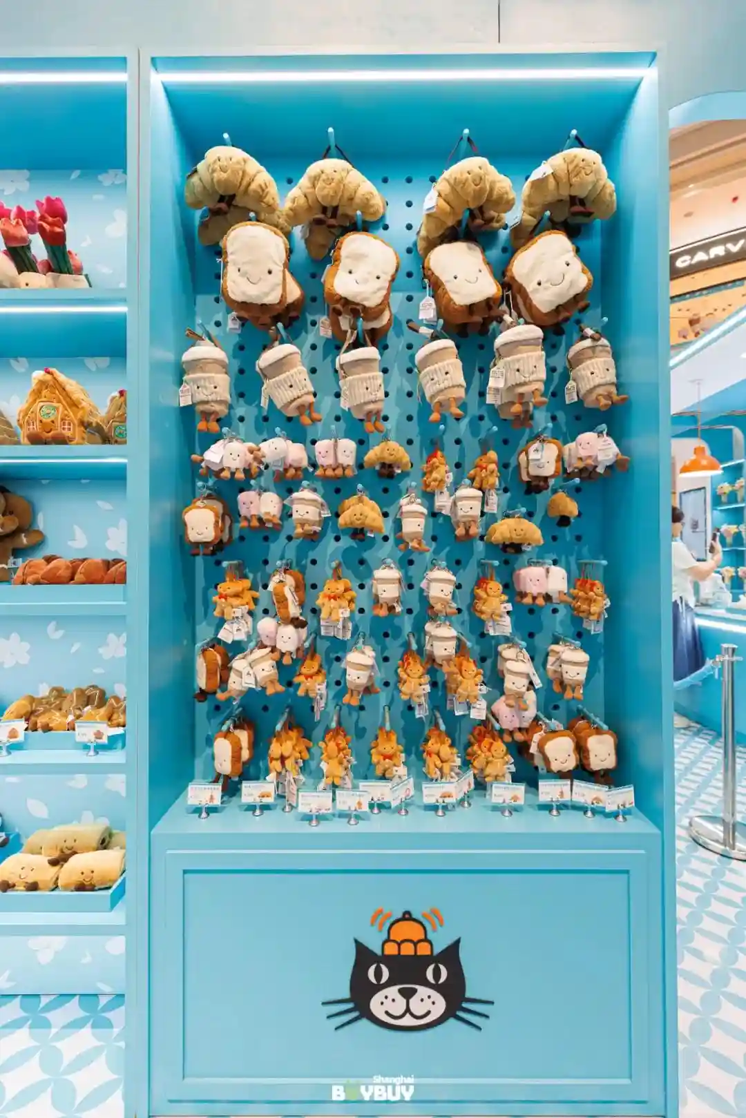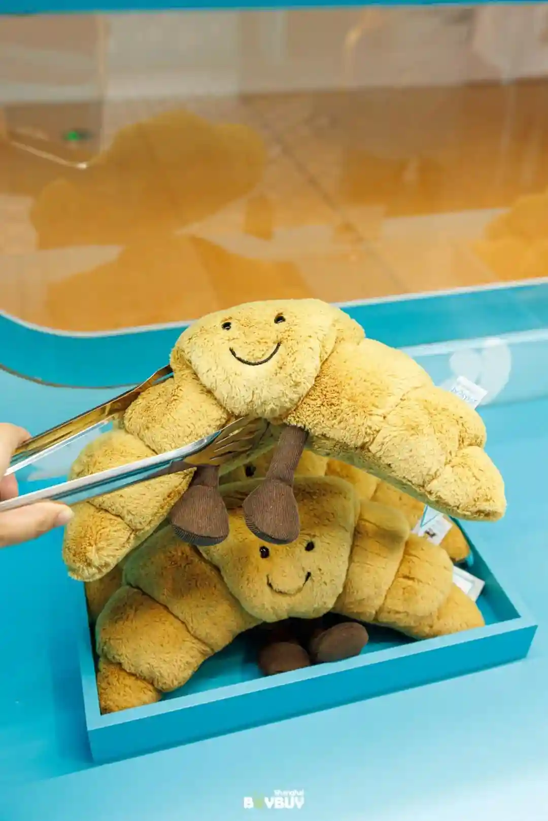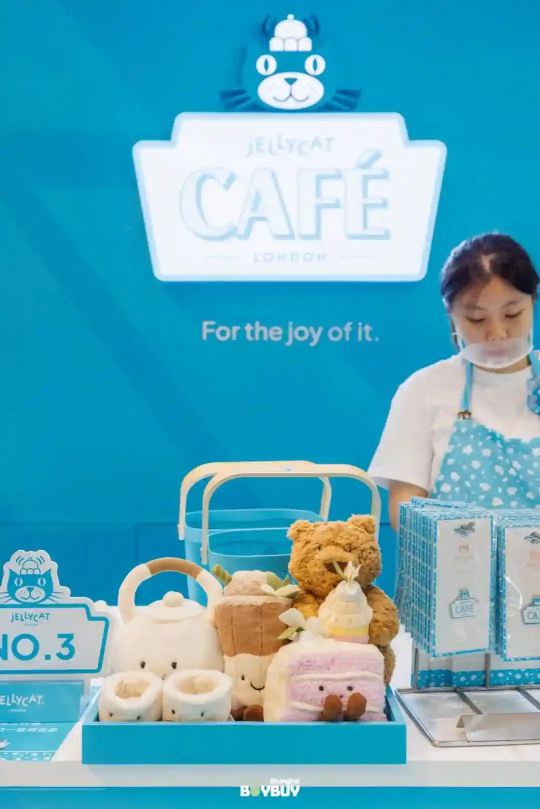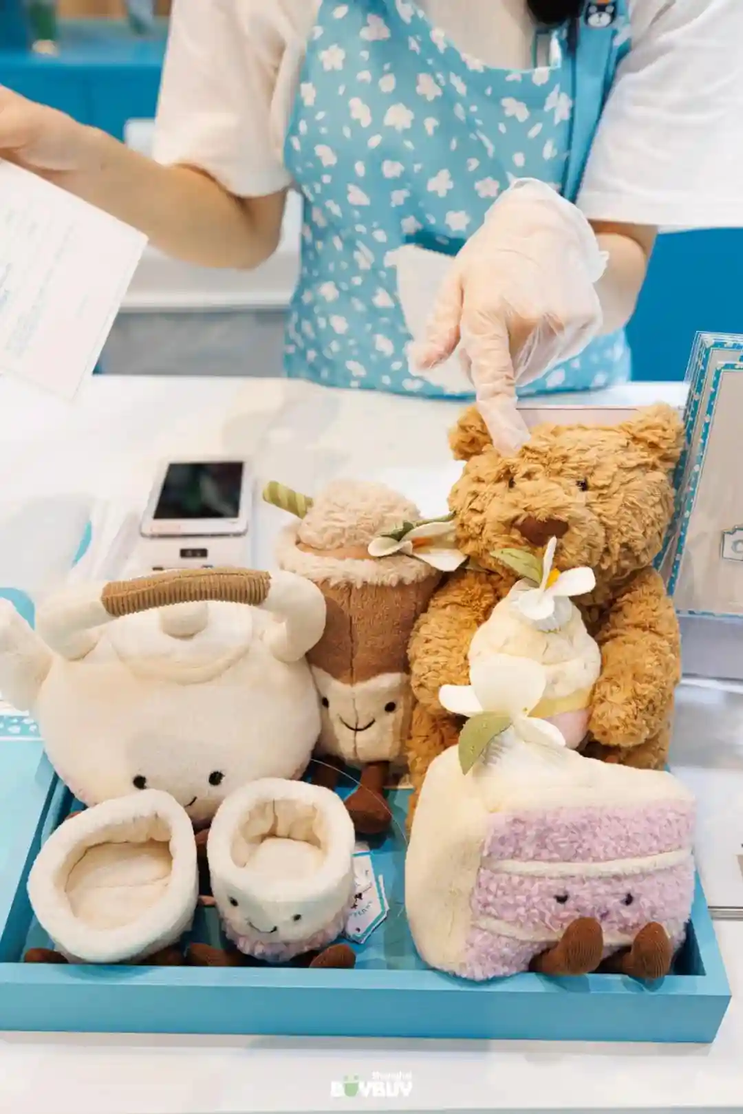 本次快闪专为上海量身打造,主题是JELLYCATCAFE,打造一个上海标志咖啡厅的场景,搭配JELLYCAT的可爱面包饼干蛋糕拿铁小玩偶;还有加入玉兰花元素的上海限定玩偶。