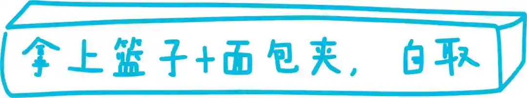 进门第一步,店员小姐姐会引导你领取一个小篮子,用面包夹挑选自己喜欢的“小面包们”放进购物篮里。