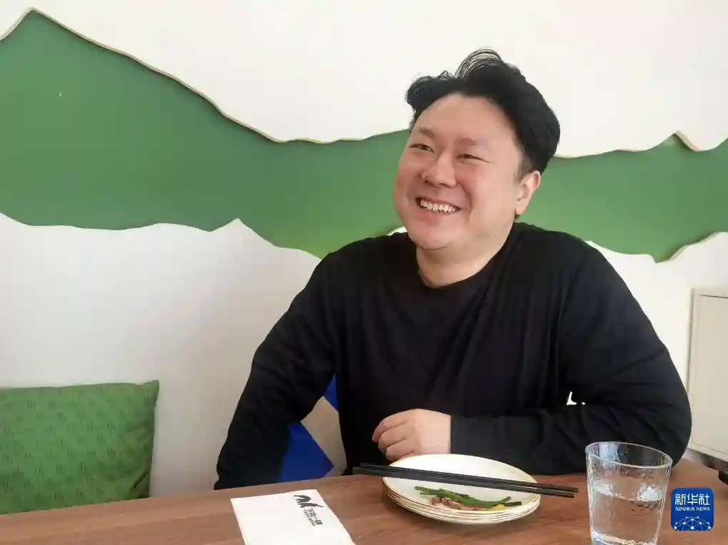 澳门青年李永益在他新开的澳门特色餐馆讲述在上海创业的故事(2024年11月26日摄)。新华社记者许晓青摄