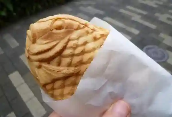 鲷鱼烧是日本人气颇高的传统小吃,日语里的字面意思是烧烤过的鲷鱼。鲷鱼烧的原形是赫赫有名的“今川烧”,这也是一种以鸡蛋牛奶面粉制作的小食。在明治时期,在“今川烧”的基础上,用模仿各种动物铸造出的模具制作了很多活灵活现的甜食。因为普通老百姓都吃不起鲷鱼,所以当时以鲷鱼形状做出来的“今川烧”就最受青睐,沿袭至今。它以面粉、鸡蛋、砂糖、牛奶与小苏打为主,可以自行增添风味。譬如在面粉中加入抹茶粉或是加入杏仁粉,若是喜欢水果味,还可以加入各色水果粉,你甚至可以在里面加入盐和芝士片,鲷鱼烧可说是一款变化极多的易操作小吃。