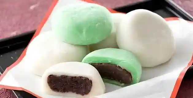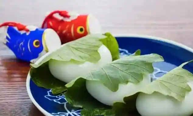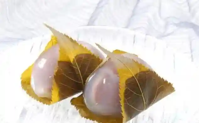 日本端午节的特色点心,自江户时期流传至今。外形是圆形或者半圆形,用洗净的梗米干燥后磨成的上新粉裹着各种馅料制成,然后用日语中被称作为“柏”的槲栎叶对折之后包在外面即可。由于槲栎叶在新芽生出之前,老叶并不会掉落,有“子孙繁栄”之意。叶子里面包的团子,看起来很像大福,实际还是有区别的,大福用的是糯米粉,而柏饼是大米粉,日语是上新粉。