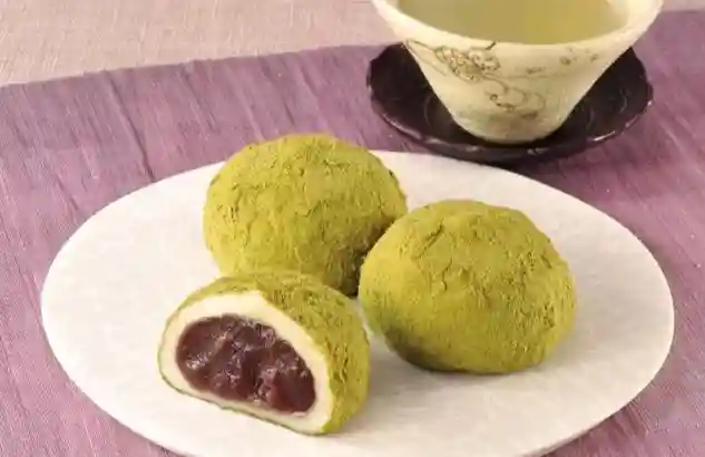 用高品质的糯米和草香恰到好处的艾草叶做成的麻糬,包裹红豆内馅,带有淡淡青草香,也叫作“蓬饼”。中医认为艾蒿的草香有助于祛除邪气,于是每逢3月3日“桃之节”,日本人都会以草饼为食,桓武天皇延历二十三年(803)年的《皇大神宫仪式帐》中有“三月例,三月节,新草饼作奉”的记载,草饼在日本也曾被当做祭品。于是3月3日也被称为“草饼节”,草饼又是春季的季语。