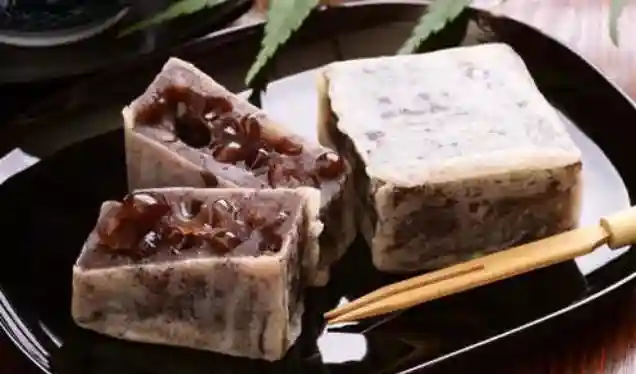 又名“葛馒头”,是用葛粉做成的透明果冻,里面包着红豆馅,外面再卷上一张樱叶,吃起来冰冰凉凉,特别适合夏天。