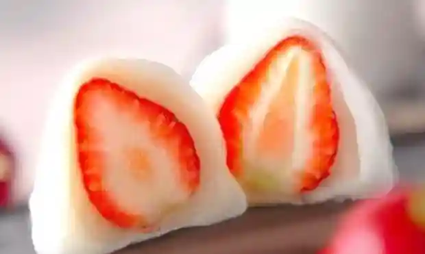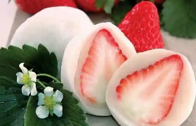 "大福",是日式传统点心之一。自江户时代起,水果大福一直成为日本接待国宾和客人的食物。当时,因为它那丰满的外形,曾经被叫做“大腹饼”,后来有人就取其谐音“大福”来表达自己对吉祥的向往。大福细白软糯,外皮是QQ的冰皮,而馅料都是当季的真材实料的水果为主。冷藏后的口感更佳,轻轻一口下去,细软中还带着隐隐的甜意和凉意。