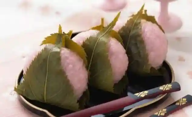 樱饼,就是用粉红色的糯米类外皮,包上豆馅,最外层围上一枚樱叶子的小点心;外观可爱,与粉红色樱花很接近,外面的樱花叶子还具有樱花特有的香气,口感清爽。樱花叶是腌渍过的,不但可以吃,还会在口齿间留下一股樱花特有的香气,就连手上也会留有余香呢。春天赏樱的时候,樱饼是最佳的茶点,一口下去,整个口腔中都弥漫出春天的清新。
