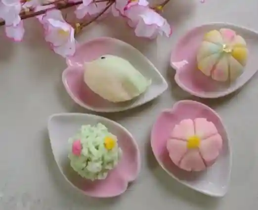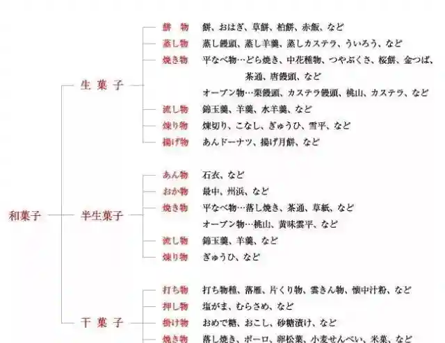 日式点心,又被称为“和菓子”,它追求的是「五感」的艺术,即视觉、味觉、嗅觉、听觉、触觉,所以各色的和菓子会根据季节变化加入相应的食材,来制作出符合情境、氛围的各色糕点,如春天赏樱的花见团子,夏天清凉的水馒头,秋季纳凉的枫叶果子,冬季暖心的草莓大福……主要使用糖、大米、糯米、小麦粉和特殊食材作为原料,特别讲究糕点的手作效果,亦被称为“日本饮食文化之花”。日式点心种类繁多,按照日本和菓子协会的分类,我们可以把和菓子分为以下几种: