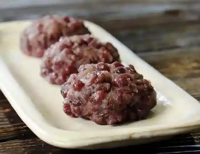 这是一种日本常见的和果子,以粳米和糯米掺和蒸熟后,轻捣揉成小团,外裹小豆馅儿、黄豆面的食品,因表面露出的一片片红豆皮,看着就像盛开的萩花一样,所以古时这种糕点被日本人称作“萩之饼”或“萩之花”。春天的牡丹饼与萩饼在本质上是同一种点心,只因季节的不同而对食材比例略加调整。