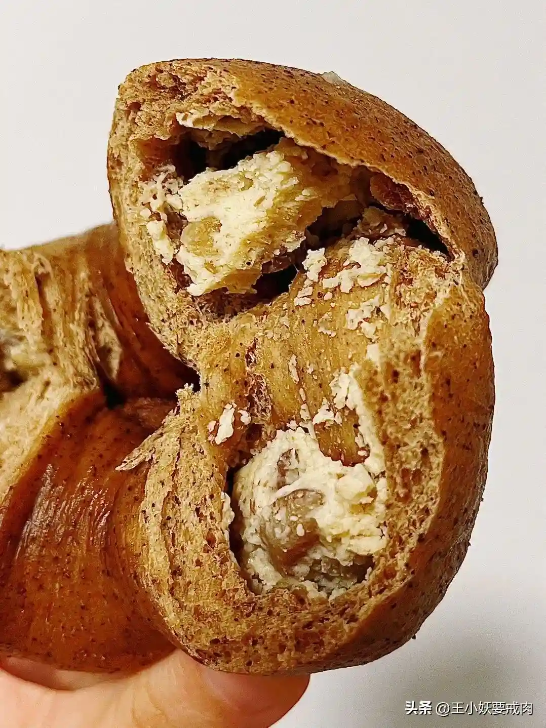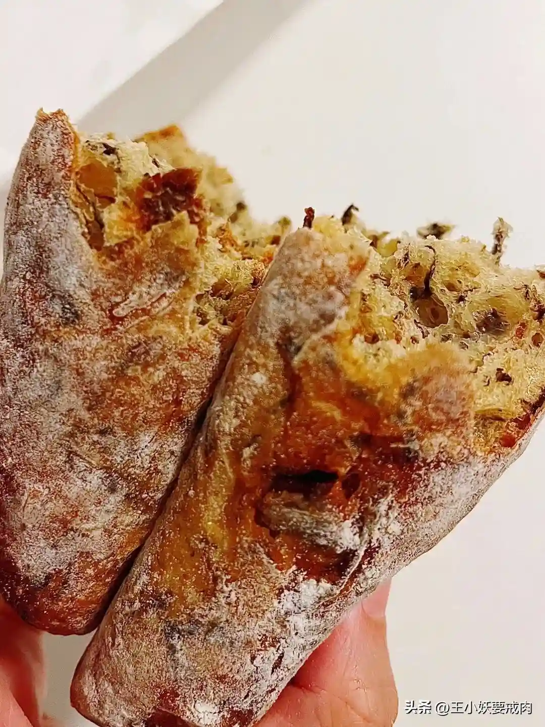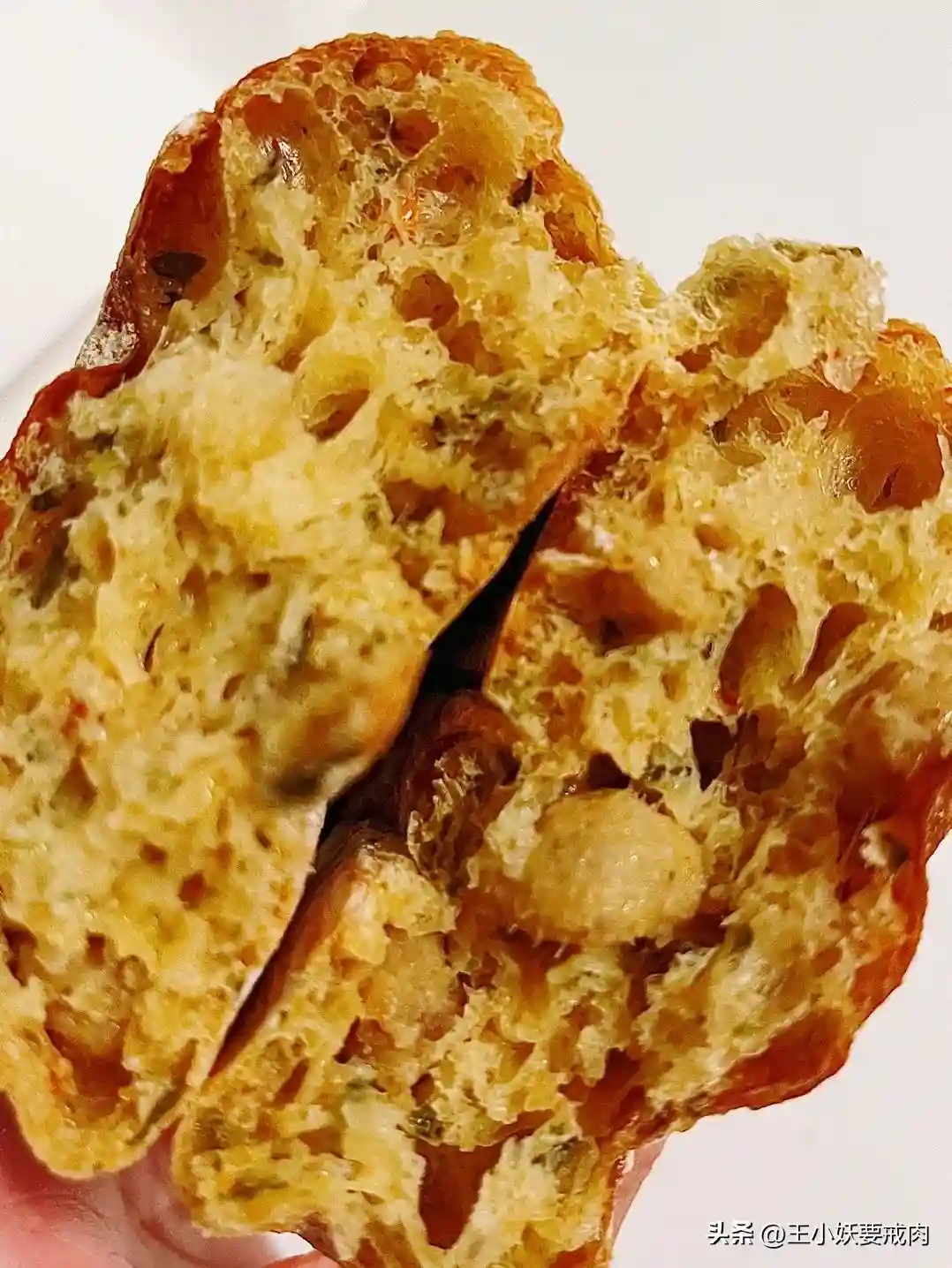 ✨梅干菜猪肉恰巴塔:隔了一晚吃,湿润度保持的依然不错。梅干菜和猪肉遍布整只面包,当然菜肯定比肉多,但好在猪肉都是瘦肉,且梅干菜的味道也渗入肉肌理中。