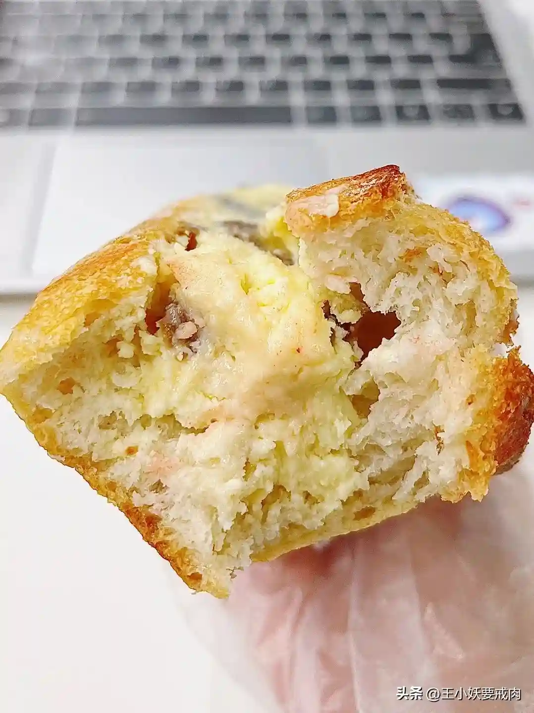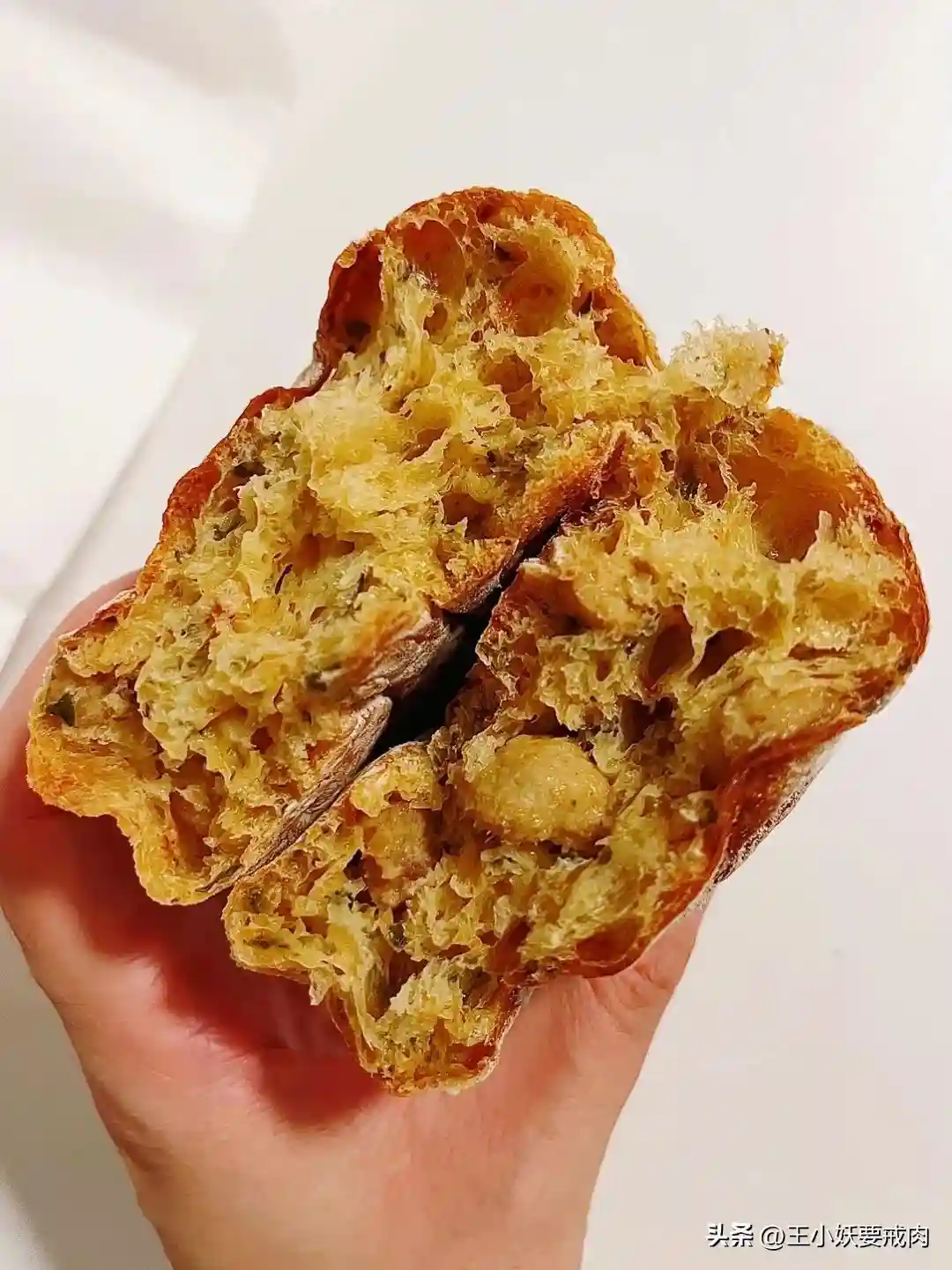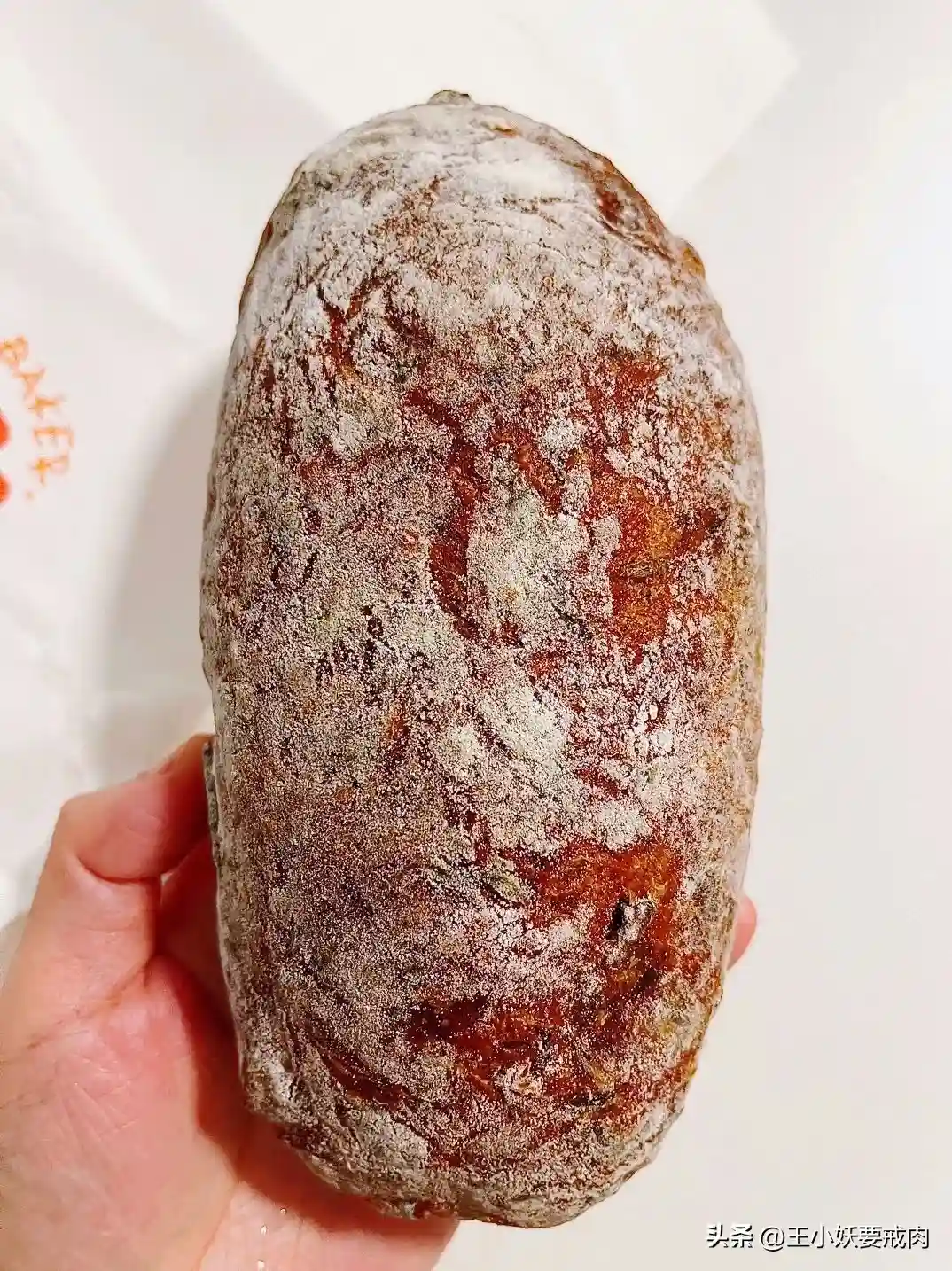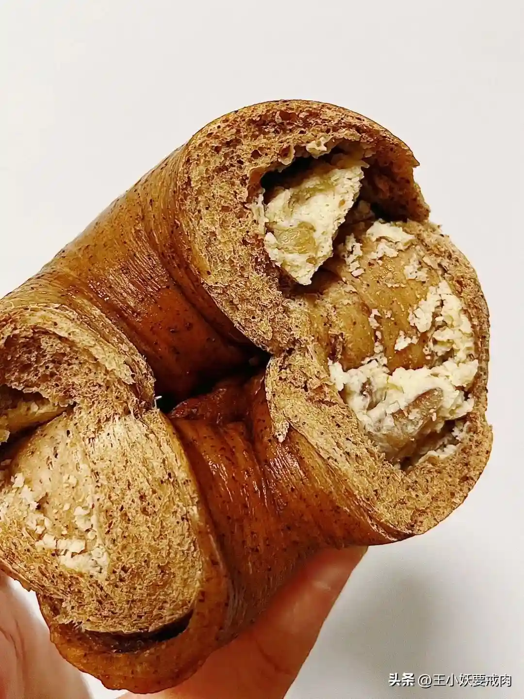 ✨梅干菜猪肉恰巴塔:隔了一晚吃,湿润度保持的依然不错。梅干菜和猪肉遍布整只面包,当然菜肯定比肉多,但好在猪肉都是瘦肉,且梅干菜的味道也渗入肉肌理中。