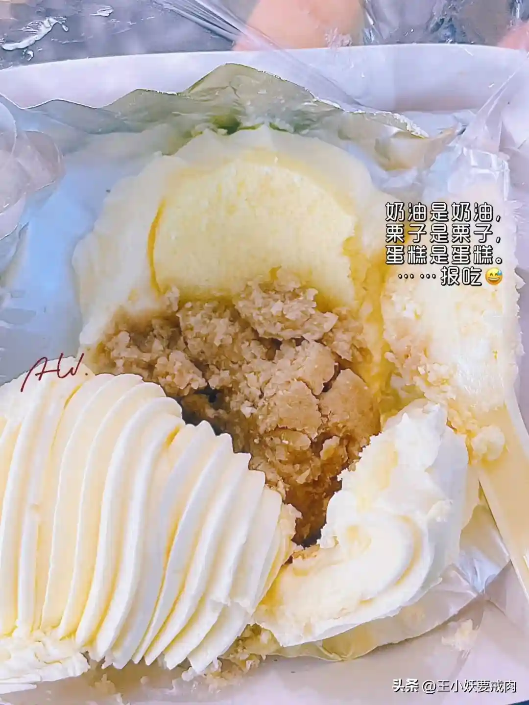 ✨白脱栗子蛋糕:90年代常见的白脱蛋糕其实就是用黄油(白脱)做的奶油蛋糕。吃来感觉有些分裂,栗子是栗子,奶油是奶油,蛋糕是蛋糕。