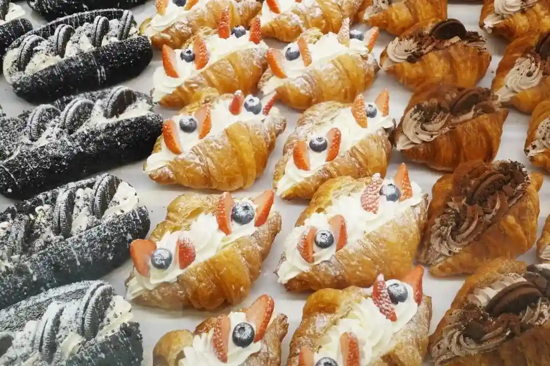 各式新鲜出炉的面包糕点